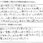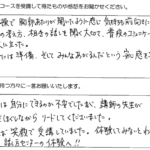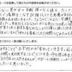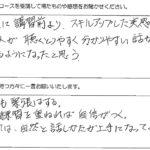 今回のセミナーを受講して、多くの事を学ぶ事が出来ました。今迄は、長く話す事が良い事だと思っていましたが、逆に余分な事を、はぶく事が相手に伝わると学び、勉強になりました。この2日間ありがとうございました。...