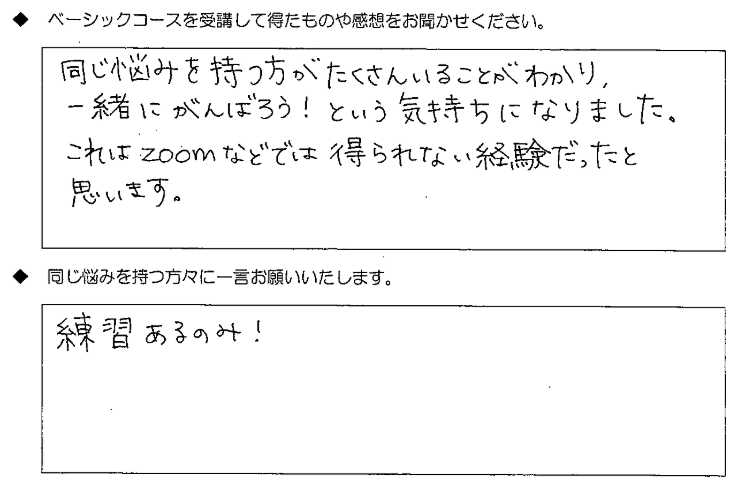◆ ベーシックコースを受講して得たものや感想 ◆
